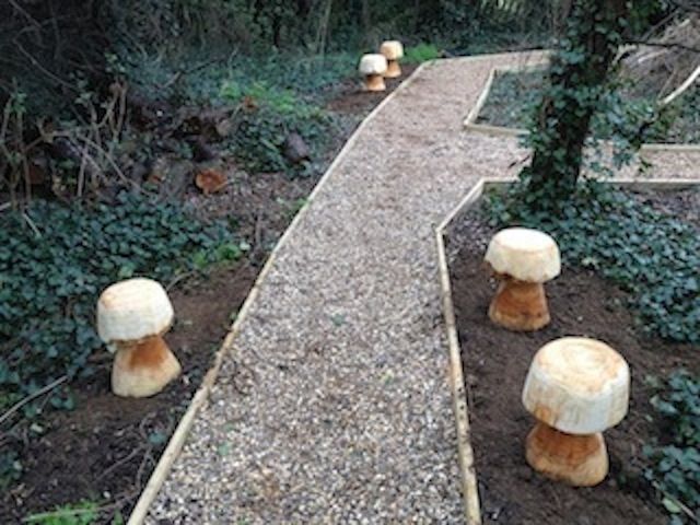 Brightly coloured rubber mulch is a great and fun alternative to dull concrete pathways. Gravel, wood chip and wet pour also make great pathways and access areas.